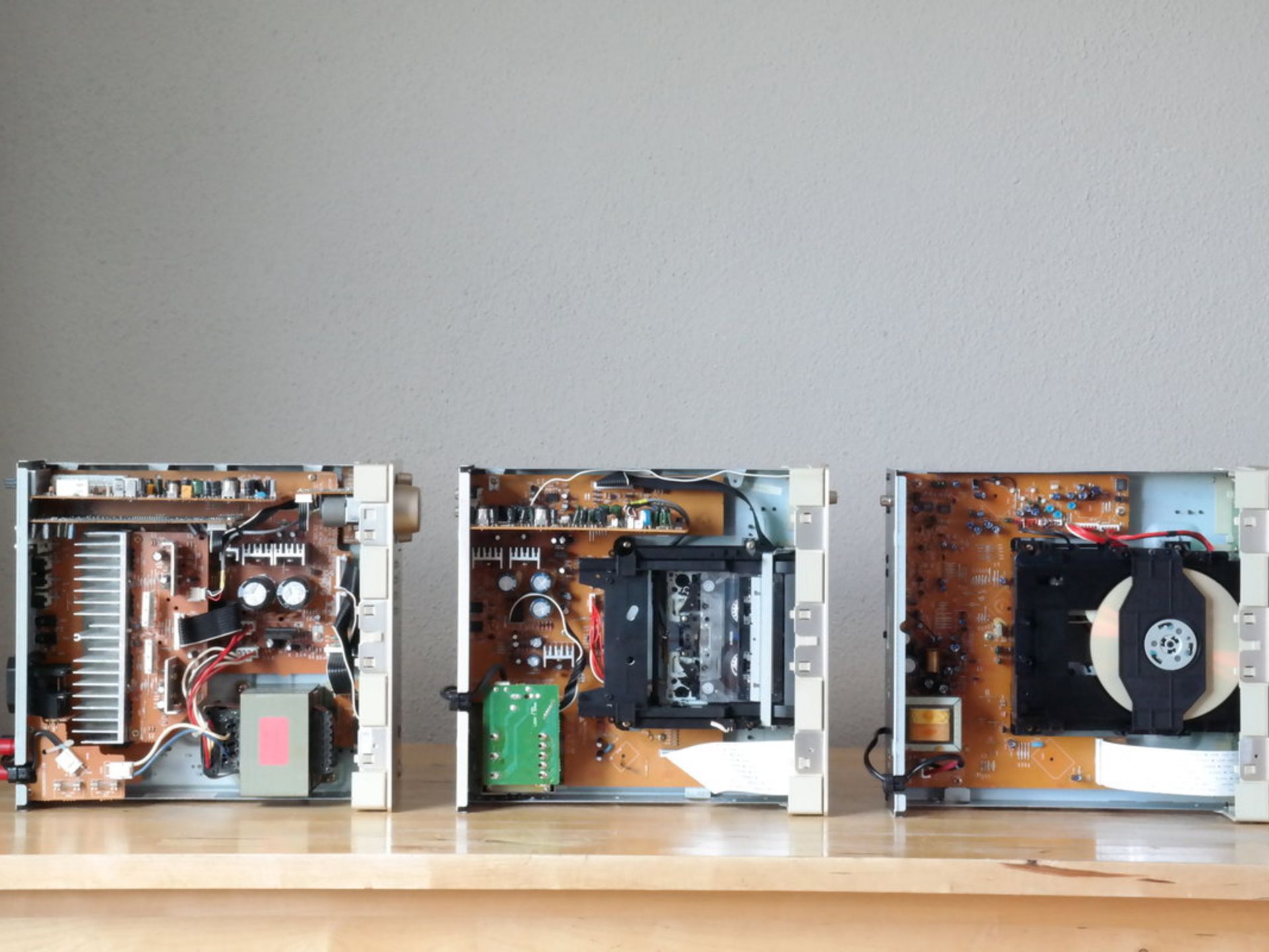 Die Anlage hat kleine Defekte: Das Tape-Deck spielt Kassetten in bester Qualität, aber der Auto-Reverse-Modus funktioniert nur in einer Richtung. Der CD-Player summt kaum hörbar im Standby. Weitere Erläuterungen unten.