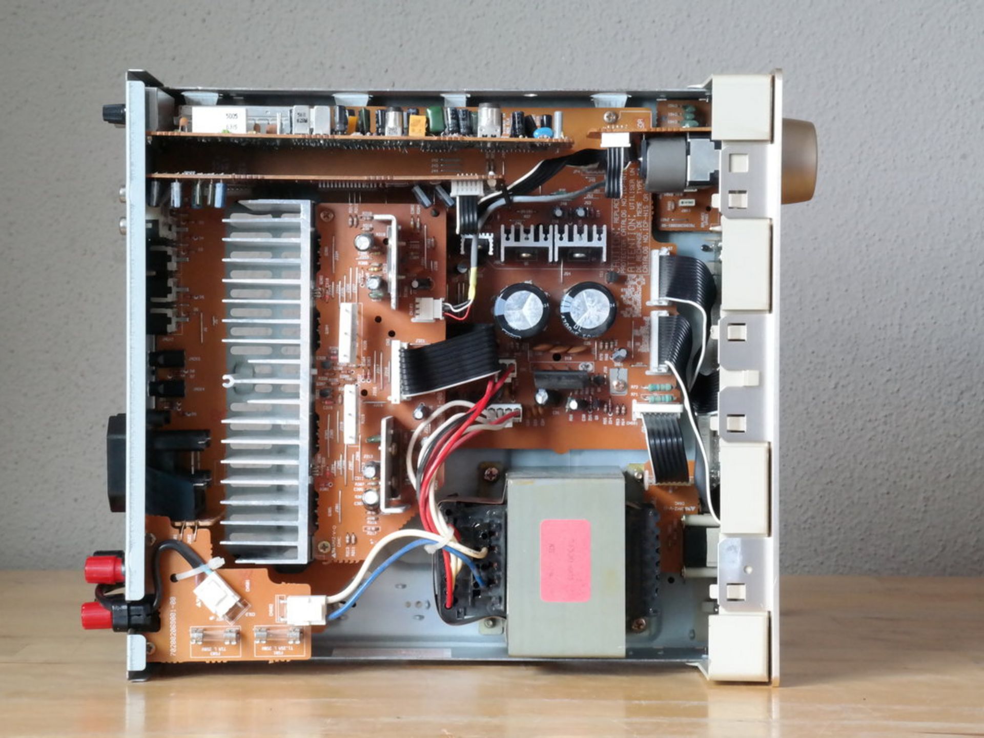 - Audio-Eingänge: AUX (z.B. MP3-Player), CD, MD, Phono, Tape-Deck