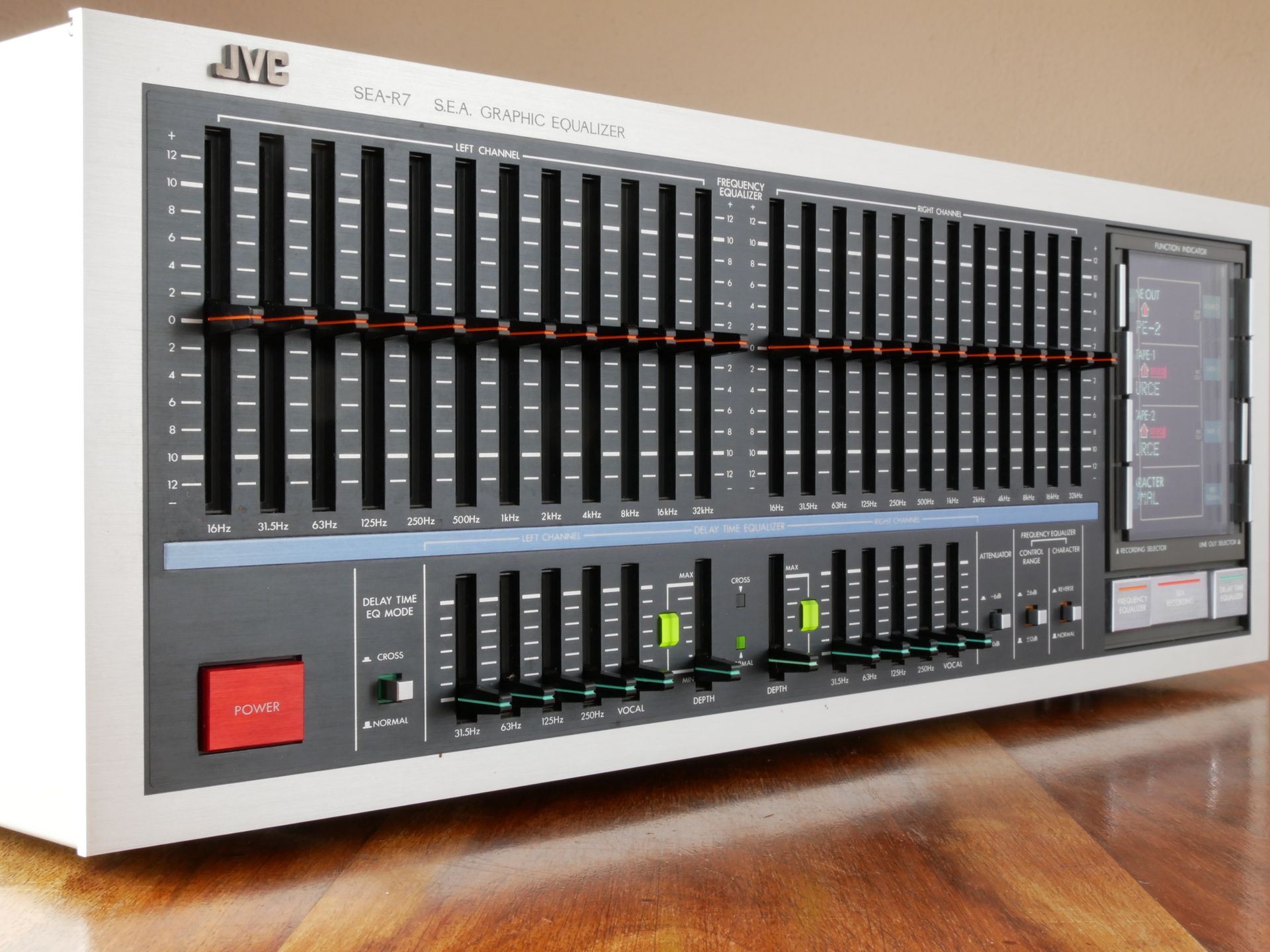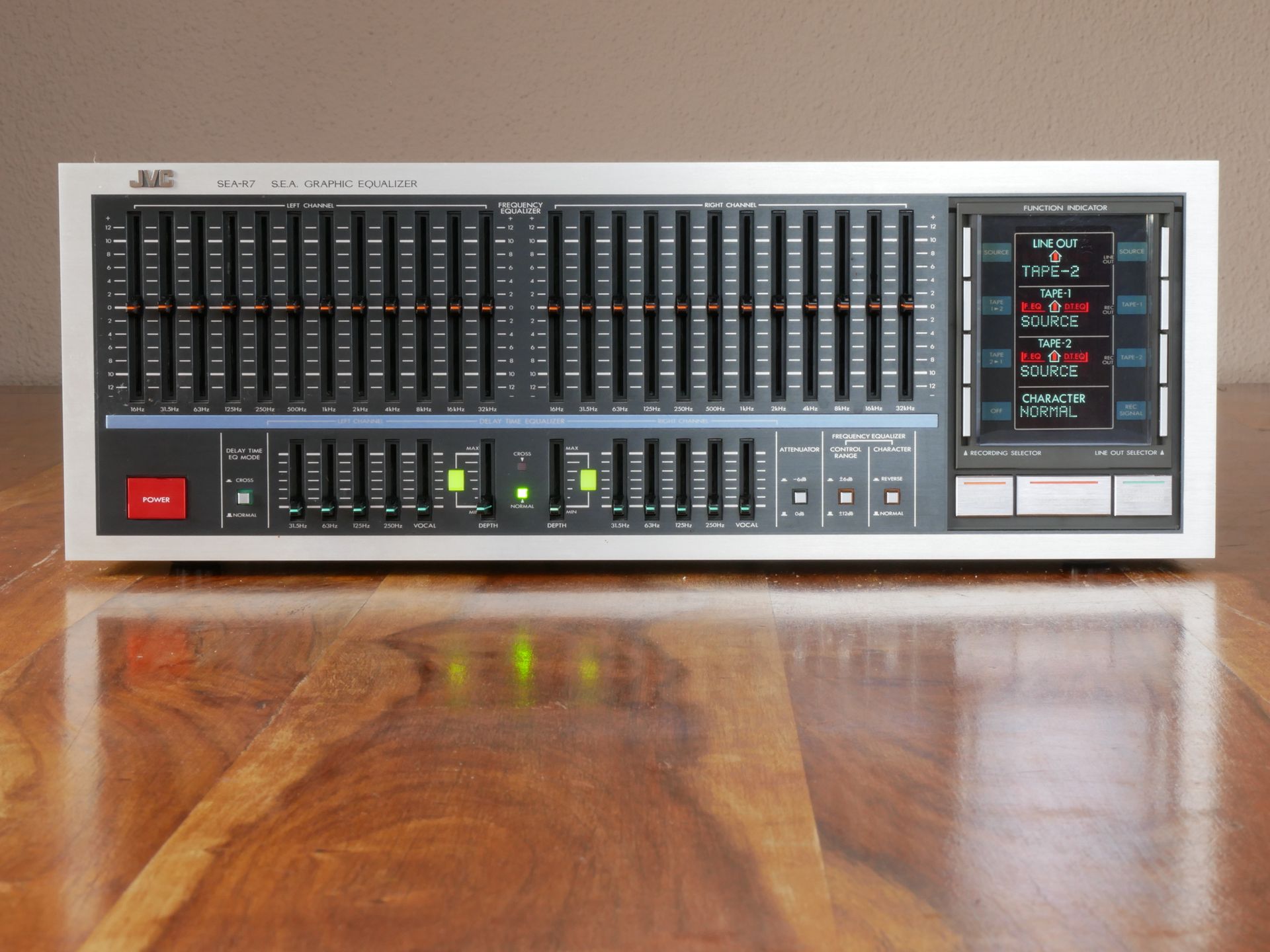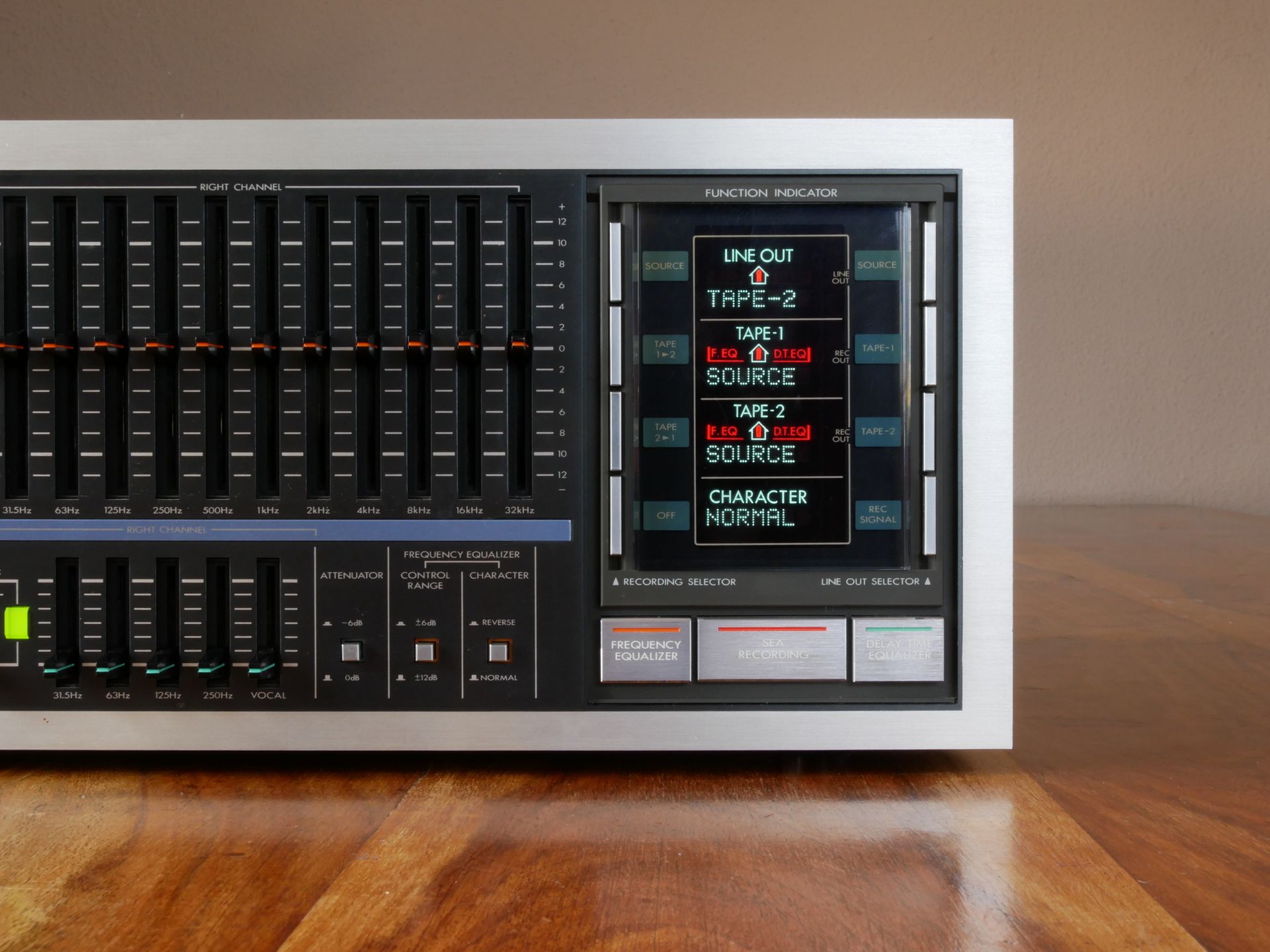 Klangregelung mit 12 Schiebereglern pro Stereo-Kanal und vielen weiteren Optionen. Gerät wurde von 1981 - 1985 gebaut.