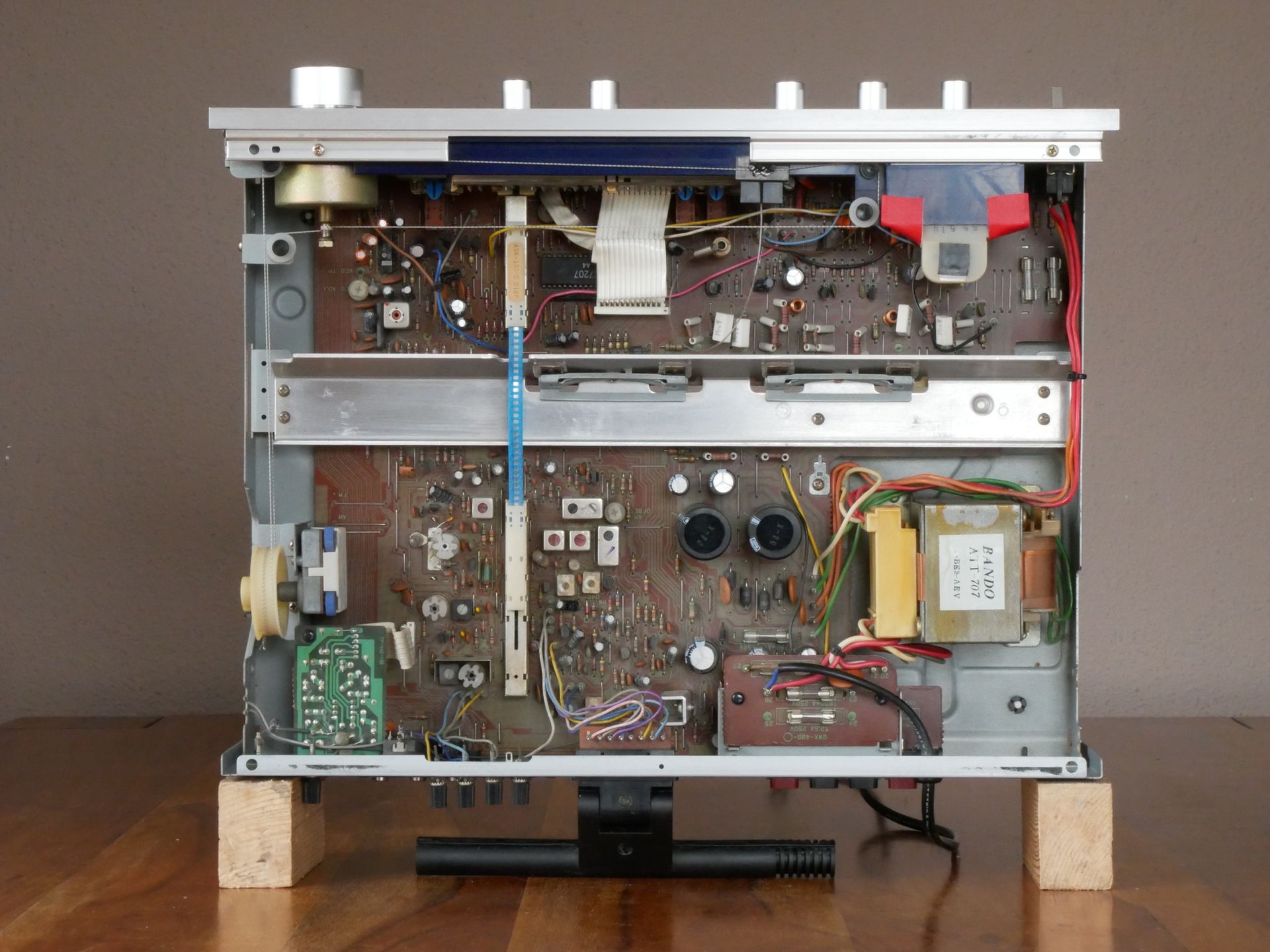 Guter Zustand. 1 Jahr Garantie. Von 1981. 3-Band-Stereo-Receiver mit Spannungs-Synthesizer und Festsendertasten. Gebürstetes Aluminium.